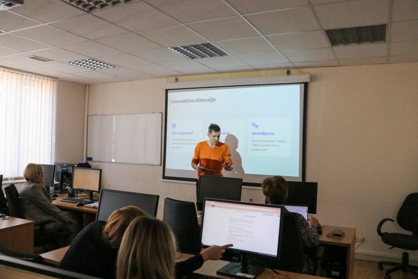 Darbnīcu vadīja svešvalodu skolotāja un IT mentore Ginta Tarvida. Pedagogi iepazinās ar iespējām izmantot mākslīgo intelektu formatīvās vērtēšanas materiālu izveidei, ātri ģenerējot jautājumus un uzdevumus un integrējot tos dažādās digitālajās platformās, piemēram, Kahoot un Google Forms.