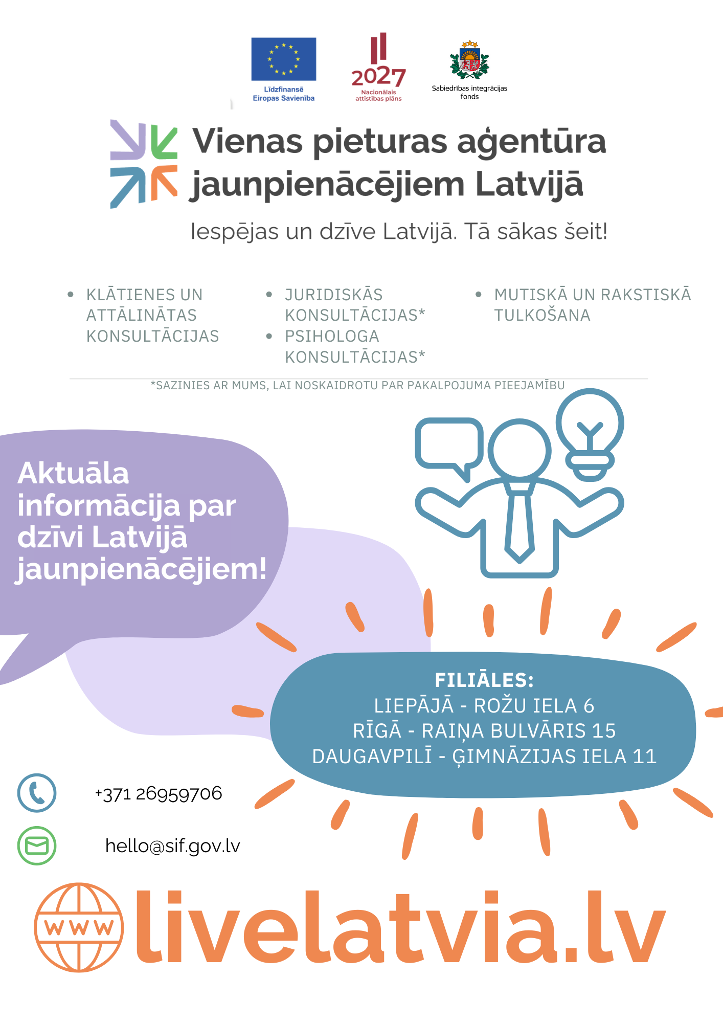 Sabiedrības integrācijas fonda Vienas pieturas aģentūra (VPA) turpina darbu projekta 2. posmā (2026–2029), nodrošinot nacionālā līmeņa koordinējošu atbalstu jaunpienācējiem visā Latvijā. Aģentūras mērķis ir sniegt kvalitatīvu un savlaicīgu informāciju, praktisku palīdzību un emocionālu atbalstu trešo valstu pilsoņiem.