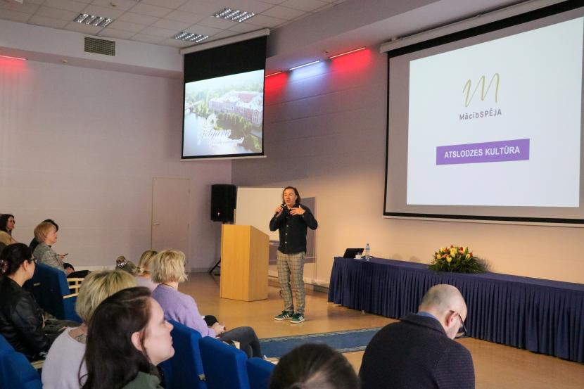 Pasākuma centrālā daļa bija programmas “Mācībspēja” veidotāja Viestura Dūles (Zuargusa) lekcija “Digitālā labbūtība: kāpēc gudra atslodze skolās ir tikpat svarīga kā slodze”. Tajā pedagogi guva plašāku ieskatu par tā dēvēto atslodzes kultūru – kā tā darbojas un kāpēc tā ir būtiska gan skolotāju, gan skolēnu labbūtībai. Lektors uzsvēra, ka dopamīna jeb tā sauktā “laimes hormona” līmeņa paaugstināšanai nepieciešams veidot veselīgus ieradumus, veicot nodarbes, kas iedvesmo, nomierina, ļauj izkustēties vai radoši izpausties, nevis paļauties uz īslaicīgiem ārējiem stimuliem, kas tiek gūti sociālajos tīklos vai citās digitālajās aktivitātēs.