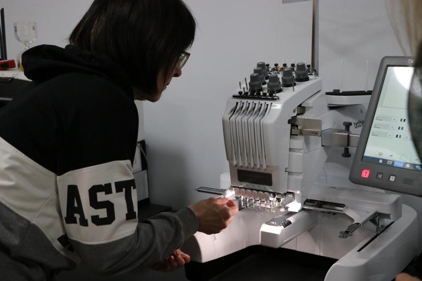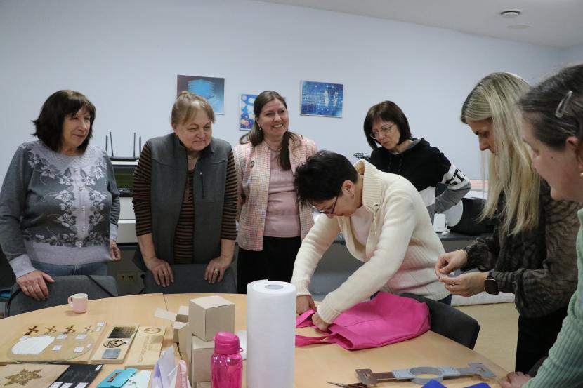 Pasākums norisinājās ZRKAC Resursu centrā, kur ikdienā esošie un topošie uzņēmēji, kā arī citi interesenti apgūst digitālās kompetences un gūst praktisku pieredzi darbā ar modernām tehnoloģijām. Speciālista vadībā dalībnieces strādāja ar automatizēto izšūšanas mašīnu un personalizēja auduma maisiņus ar saviem iniciāļiem. Radošais process veicināja savstarpēju dialogu un ideju apmaiņu, paplašinot dalībnieku vārdu krājumu un nostiprinot valodas prasmes praktiskā darbībā.