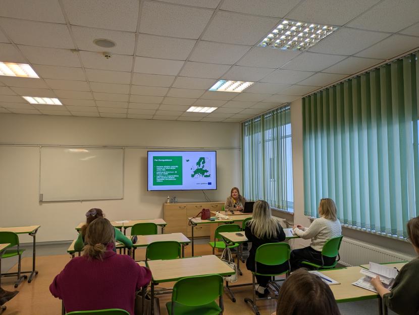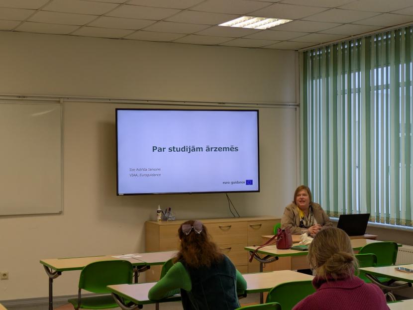 Semināra laikā par VIAA Euroguidance programmas resursiem, atbalsta iespējām un praktisko pieredzi stāstīja Ilze Jansone, VIAA Plašākas izglītības pieredzes departamenta Karjeras attīstības atbalsta nodaļas un Euroguidance programmas vadītāja.