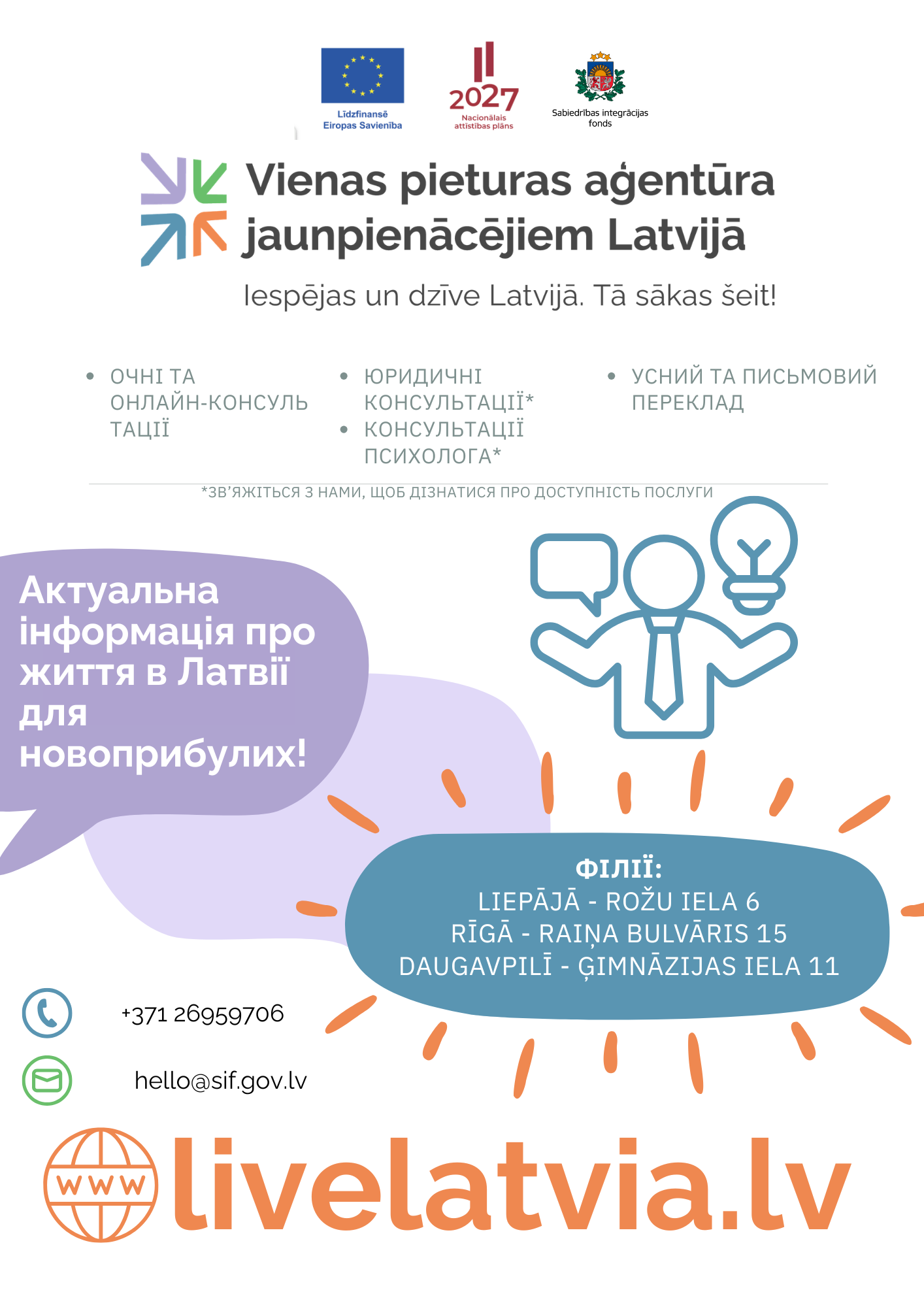 Після прибуття до Латвії для зв’язку просимо користуватися єдиним телефоном допомоги: +371 27380380